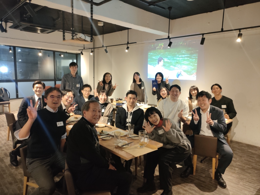 ご退官された國見裕久先生、現研究室の仲井まどか教授にもご参加いただき、総勢18名の世代を超えた懇親会となりました。学生時代の写真を会場に投影し、研究室で過ごした日々を懐かしみながら、会場は終始和やかな雰囲気に包まれていました。 |